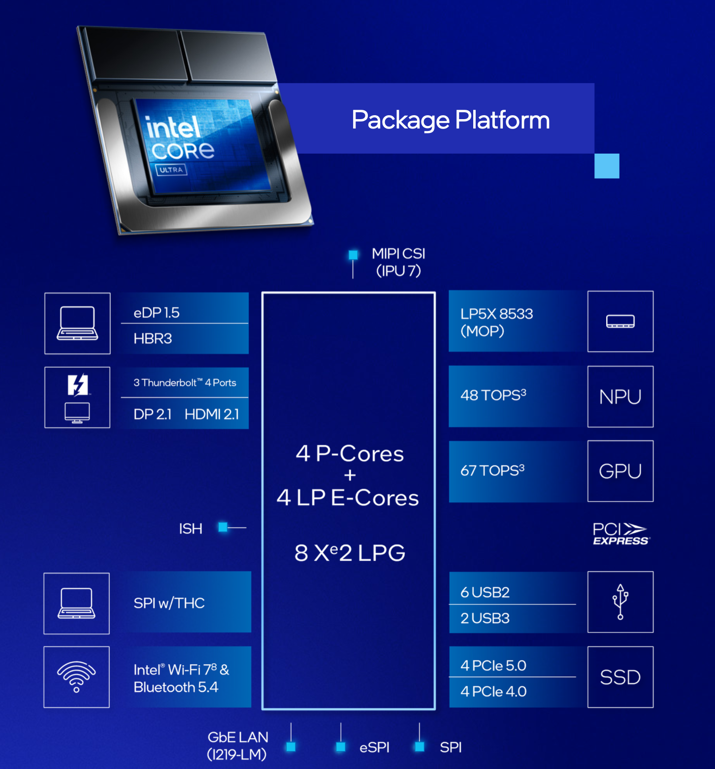 - NPU 4.0: Intel’s AI engine accelerates a range of AI workloads, making it ideal for content creators, data scientists, and business users who require machine learning and AI-driven enhancements. This is particularly beneficial for tasks like video editing and gaming, where AI-driven optimizations can improve quality and speed.