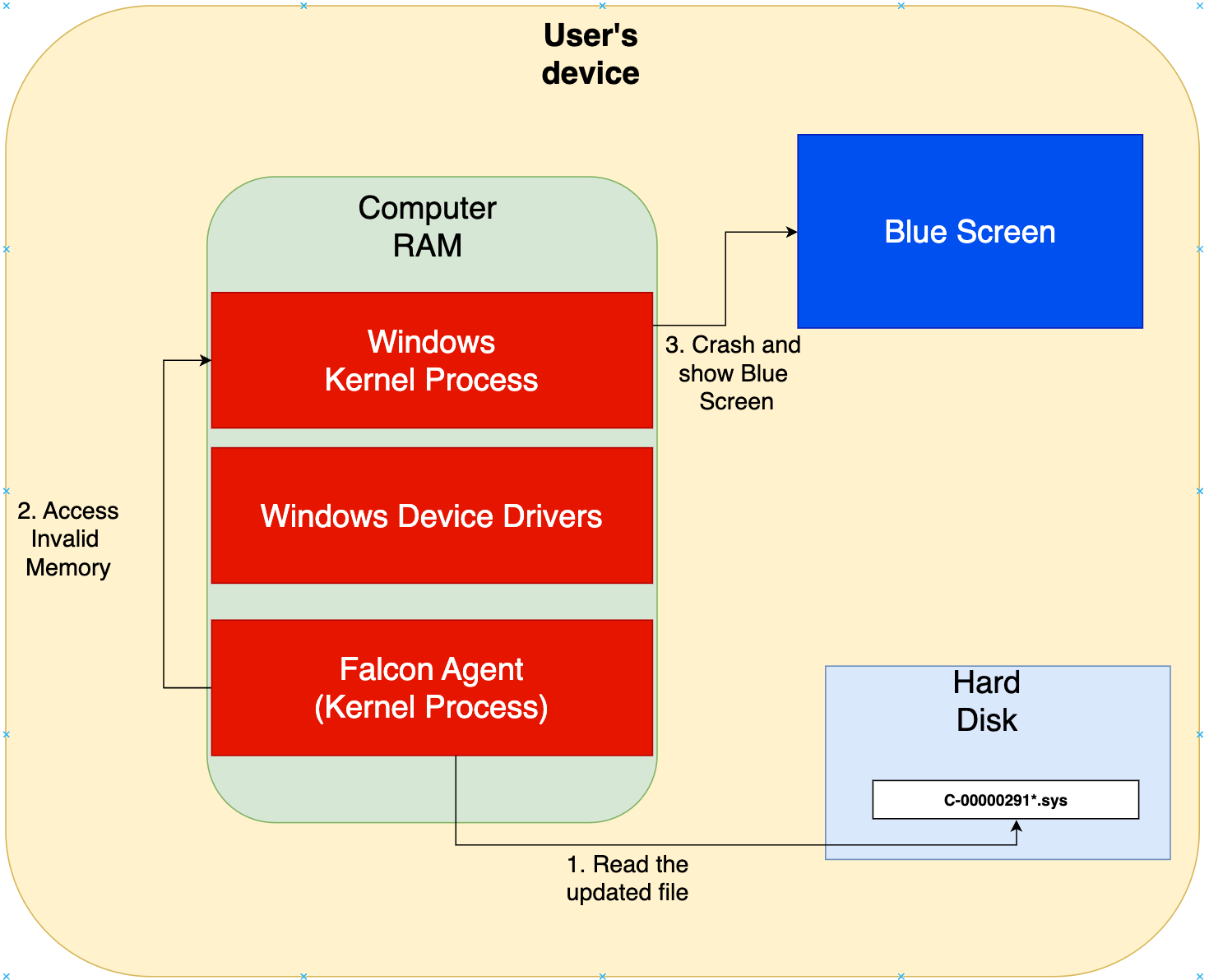 The specific update from CrowdStrike had a misconfiguration in the Falcon sensor’s interaction with the Windows kernel. This led to conflicts in system processes, triggering a cascade of errors in the Windows kernel. Critical system processes failed, resulting in the infamous BSOD, rendering systems inoperable. Affected systems needed manual intervention to roll back the update or apply a subsequent patch from CrowdStrike, significantly slowing the recovery time.